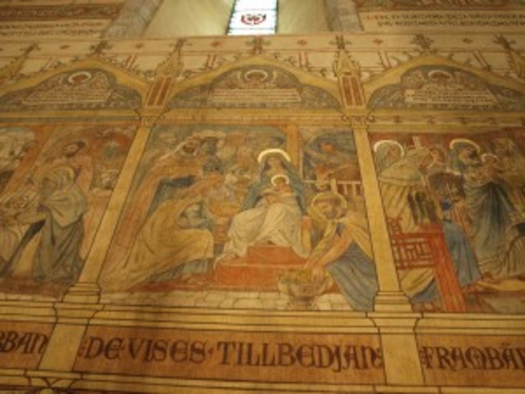 Ajamme Kappelshamnin kautta Lärbrohon, josta voisi jatkaa Fårösundiin ja Fårön saarelle. Käännymme kuitenkin etelään, sillä minua kiinnostaa sistersiläismunkkien muinainen luostarialue, Romakloster, joka on saaren sisäosissa. Dalhemin kirkko, yksi 92:sta Gotlannin keskiaikaisesta kirkosta, osuu matkan varrelle ja vetää meidät ihailemaan kauneudestaan kuuluja lasimaalauksia ja freskoja. Kirkot, joilla on nähtävyysstatus, ovat auki kesäaikana 9-17. Dalhemin kirkon 50-metrinen torni kohoaa uljaana kohti taivasta ja sisätilojen kauneus mykistää. Ulkona vainioiden vilja on korjattu ja pienessä kirkonkylässä tuntuu pelloille vasta levitetyn lietelannan vahva haju.