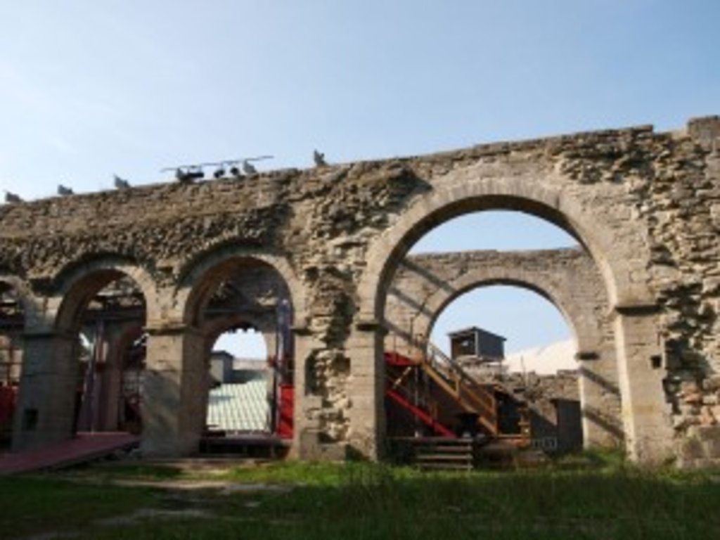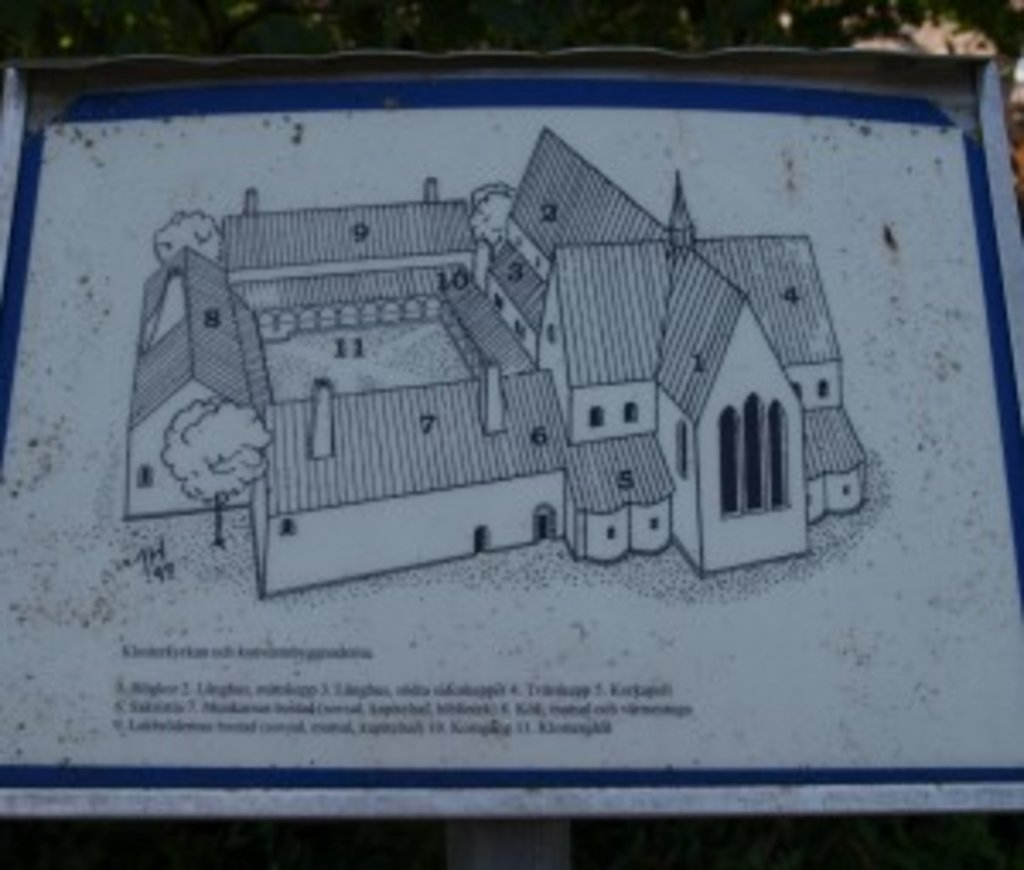 Romakloster löytyy pienen etsimisen jälkeen. Ajetaan ensin ohi, sillä opasteessa lukee ylinnä Kungliga Romateatern ja vasta toisella katsomalla huomaa Klosterruin-viitan. Paikka on kovin hiljainen, matkailun pääsesonki on selvästi ohi. Aikoinaan luostari on ollut rikas. Viljelyalueet ympärillä ovat laajat, luostarialueella on kymmenkunta rakennusta ja valtavan kirkon rauniot. Paikassa toimii kesäteatteri, viikonloppuisin esitetään Macbethia. Kaksi myymälää ja kahvila ovat avoinna, olemme lähes ainoat kävijät.