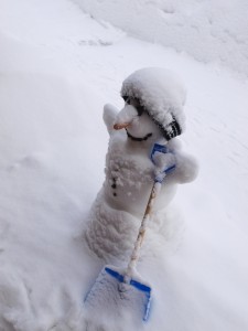 Meidän pihassa asuu Kalle, yksi vuotta. Kallen isä on tehnyt rappuvahdiksi Kallen kokoisen, porkkananenäkkään ja raitapipoisen lumiukkelin, joka kurkkii Kallen ikkunaan päin. Kalle katsoo ikkunastaan ja on sitä mieltä, että lumiukkelille pitää panna lapio käteen. Turha siinä on joutilaana seisoskella. Kun Kalle tulee ulos isän kanssa, hän ottaa vuorostaan lapion ja tekee itse lumitöitä ja kun Kallen äiti kutsuu miehet syömään, lapio palautetaan lumiukkelin käteen. Näin meidän pihassa hoituvat talonmiehen työt.