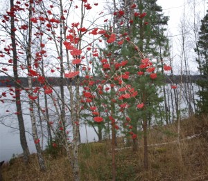 Retriittikoto otti vastaan lämpimästi. Oli tuttuja kasvoja ja tutut ohjaajat eikä nyt itsellä mitään vastuuta käytännön järjestelyistä. Lokakuinen maisema on äärimmäisen rauhoittava, sen riisutut puut, jäkäläkallio jääurut kupeellaan, sammaleiset kivet. Tummaa vihreää vasten pihlajain kirpeänpunaiset tertut yhä.