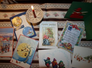 joulutervehdysten lähettelyn aika on tullut. seulon menneiden vuosien kortteja, ajattelen ihmisiä, joiden nimiä ja sanoja niissä on. moni lähettäjä on jo poissa, olen saattanut säilyttää sen viimeisen joulun tervehdyksen. kuvat koskettavat yhä tai sanat tai hän, joka ne lähetti.