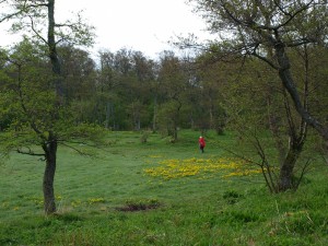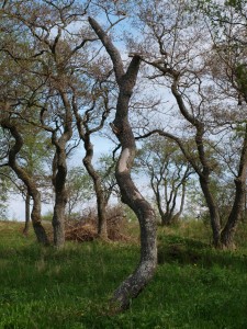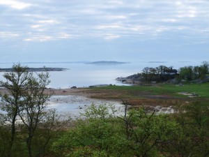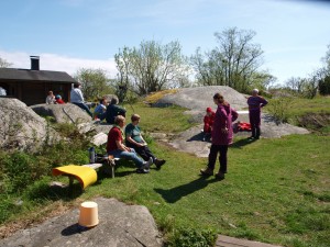Aterian jälkeen kuljimme pätkän luontopolkua, kuuntelimme lintuja ja tutustuimme saaren harvinaisiin kevätkukkiin. Seljakämmekkä, jota paikalliset kutsuvat nimellä Adam och Eva blomman, kukki ihanin valkein (Adam) ja viininpunaisin (Eva) kukinnoin. Lehtoleinikkiä oli siellä täällä keltaisinalämpäreinä. Kalliokieloja ja lehtokieloja oli runsaasti. Yleisempiä kukkivia, kevätlinnunhernettä, rentukoita, kevätesikkoja sekä orvokkeja oli kaikkialla. Kukkasieluiselle juhlaa! Lehtojen tervalepät, haavat, saarnit ja hieskoivut yksilöllisine runkoineen tekivät maisemasta erilaisen kuin mantereella. Osa puista oli lehdestetty, joka tarkoittaa rungon katkaisemista parin metrin korkeudelta. Näin aluskasvullisuus rehevöityy, ja kesäksi saareen tuodut lampaat ja lehmät saavat syötävää. Vartijatuvan pihapiiristä aukeava lehdestetty metsä oli yön hämärässä aavemainen näky.