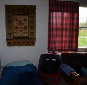Eräs tehtävistämme oli tehdä kuva/esineinstallaatio omasta äidistä pihapiiriin tai talon sisälle. Olin unohtanut ottaa materiaalia mukaan. Ensimmäisenä aamuna huomasin, että olin valinnut intuitiivisesti nukkumapaikakseni vanhan ryijyn kohdalla olevan sängyn. Ryijy oli täsmälleen samanlainen kuin lapsuuden kodissani äidin omin käsin kutoma. Siinä installaationi! Teemamme kääntyi minun kohdallani kuitenkin vaikuttavimmaksi tehtävänä olleen kirjeen kautta. Siitä tuli Äidin kirje Kuopuspojalle ja sitä kirjoittaessa itkin.