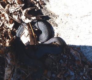 Oleellisen osan paratiisitunnelmaa loivat Raisa ja Ulla, jotka loihtivat meille päivittäin kahdesti jumalaisen hyvää kasvis- tai kalaruokaa ja yllättivät herkkupaloilla. Lounaan jälkeen oli aina vapaa-aikaa. Kolmantena päivänä laskeuduin Luontotuvalta rinnettä alas rantaan kallioiden suojassa olevalle nuotiopaikalle. Istuuduin lankulle kirjoittamaan, kasvot merelle päin. Jonkin ajan kuluttua silmäkulmassani vilahti kuin kalliota alas olisi vierähtänyt jokin. Katsahdin jalkoihini. Siinä makasi musta käärme, puoliksi kuivien lehtien alle sujahtaneena. Vaistomaisella vauhdilla hyppäsin lankulle. Sillä hetkellä olin kiitollinen, että meitä oli kehotettu pitämään saappaat jalassa metsässä ja kallioilla liikkuessa. Käärme oli melko pieni, ilman sahalaitakuviota. Pää jäi varjoon, joten en tiedä oliko se rantakäärmeen vai mustan kyyn poikanen. Kuvasin sitä penkillä seisten ja livahdin sitten tieheni. Sanotaan, että jokaisessa paratiisissa on käärmeensä – kallioisilla saarilla kirjaimellisesti.