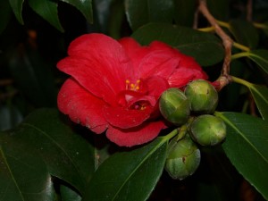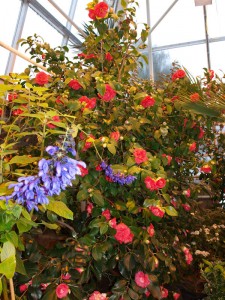 Aikaa on. Pysähdymme Ruissalon kasvihuoneelle. Siellä on puolenkymmentä tyttöä opettajansa kanssa piirtämässä orkideoja. Jättilumpeiden allas on edellisviikolla putsattu, siinä kelluu vain valtavia lehtilautasia. Mutta muita kukkia on! Viimeisestä ansarihuoneesta löytyvät ne ihanasti punaisin kukin hehkuvat kameliat. Kukista tulee onnellinen olo.