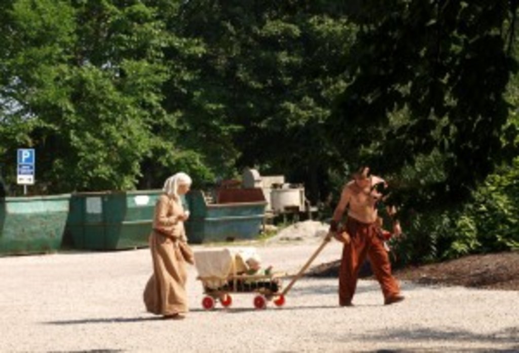 Puutarhasta pääsee nurmikentälle (Paviljongsplan), jossa keskiaikamarkkinat kuhisevat. Kojuissa myydään mm. avotulella paistettua villisikaa, mikä osoittautuu erittäin herkulliseksi lounasvälipalaksi sipulirenkaiden, juuresraasteen ja jogurttikastikkeen kanssa pitaleipään kätkettynä, juomana puolukkamehua. Kentällä on voimainmittelijöitä ja temppujen tekijöitä esiintymässä yleisön keskellä. Tulee hiukan epätodellinen olo, kuin olisi joutunut mukaan isoon roolipeliin, jossa kaikki pyrkii näyttämään aidon keskiaikaiselta, mutta on kuitenkin suurta näytelmää. Puvut paljastavat roolin esittäjän säädyn: on aatelisia ja porvareita, talonpoikaisväkeä, munkkeja ja nunnia ja kerjäläisiksi pukeutuneita. Erityisesti nuoret miehet näyttivät eläytyvän innokkaasti rooleihinsa.