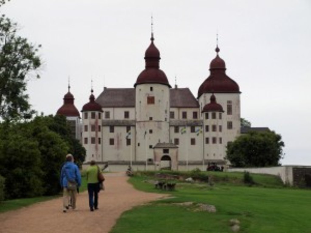 Viimeisen Ruotsin-päivän ohjelmaan suunnittelemme kuninkaallisia linnoja, kenties hiukan kesäisen Victorian ja Danielin televisioidun hääjuhlan innoittamina. Eskilstunan ja Södertäljen väliseltä tieltä pienen poikkeaman päässä on Gripsholmin renessanssityylinen linna. Se sijaitsee pienen Mariefredin kaupungin kupeessa. Puolen päivän jälkeen linnaan tutustumassa on runsaasti turisteja. Parkkialueen viereisellä nurmikentällä temmeltää energisiä koululaisryhmiä opettajineen.