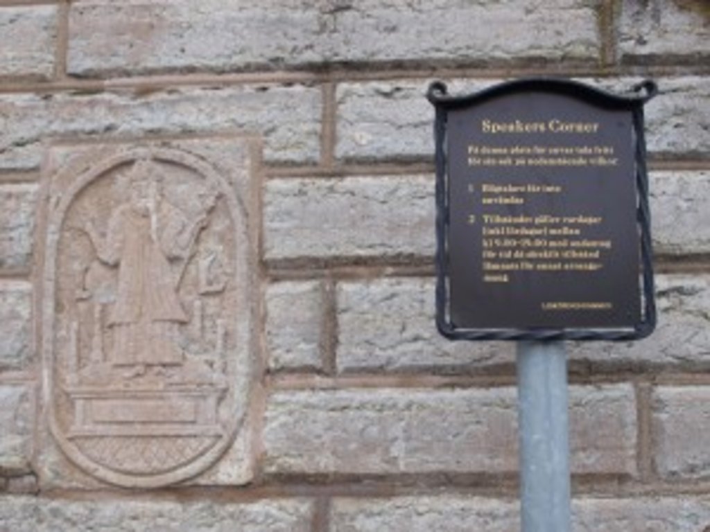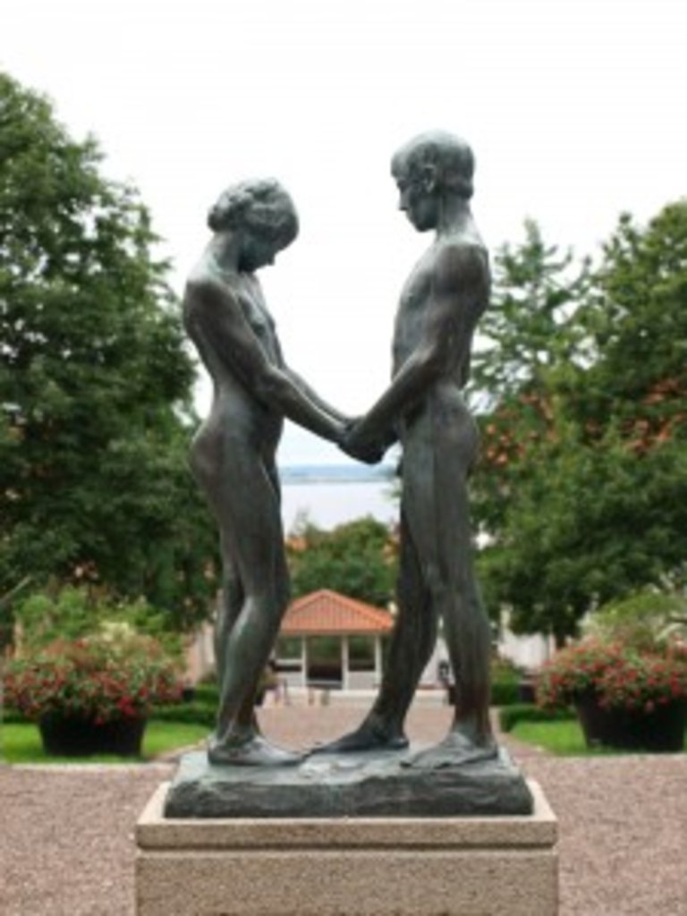 Lidan-joen puistossa kohtaamme uudestaan nuorta rakkautta kuvaavan patsaan, josta on pienempi versio Grännassa. Carl Eldhin Ungdom on tehty syntymäni vuonna. Mieleen nousee 16-vuotiaana koetun ensirakkauden huuma. Näin herkkää se oli ja kuitenkin niin kokonaisvaltaista, että muistokin riipaisee. Kaupungin nähtävyyksistä käymme kuvaamassa vanhan raatihuoneen, jossa on hauska puhujaparveke, missä yhä saisi käydä kuka tahansa puhumassa yleisölle, vähän kuin Lontoon puistoissa.